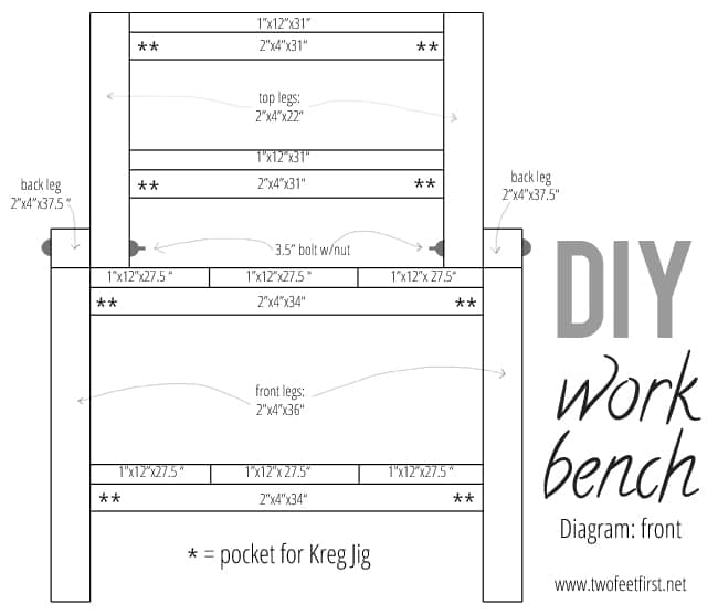Here is a diagram of the front view of the bench.