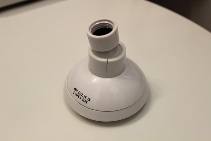 Sense the day that we moved into our lovely home, the shower head needed to be replaced. But we have been dragging our feet for over a year, we have even had the new shower head for about 2 months… Here is our old shower head, see the crack.